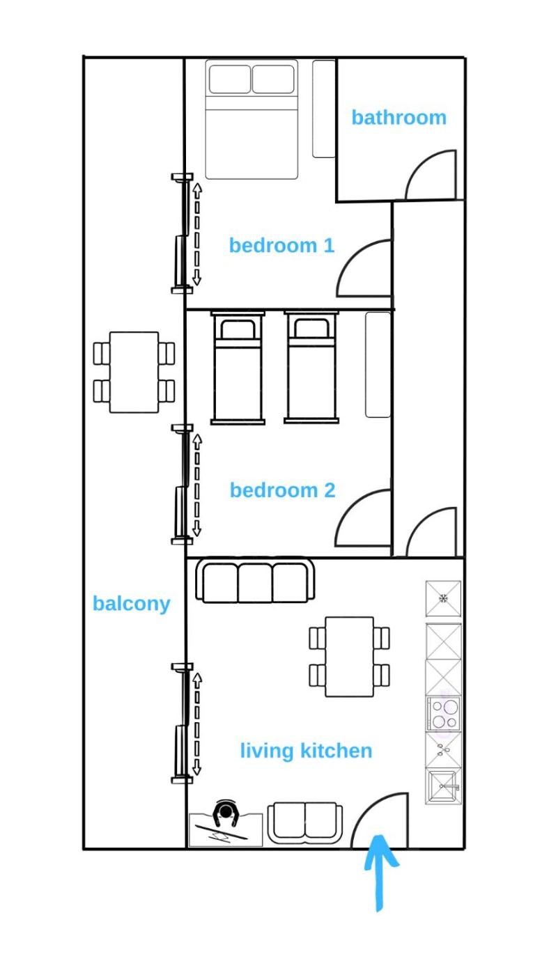 Two-Bedroom Apartment. This spacious apartment includes 1 living room, 2 separate bedrooms and 1 bathroom with a shower and free toiletries. In the well-equipped kitchen, guests will find a stovetop, a refrigerator, kitchenware and an oven. This apartment is air-conditioned and has a seating area with a flat-screen TV, a washing machine, a coffee machine, a dining area, as well as a wardrobe. The unit has 4 beds.