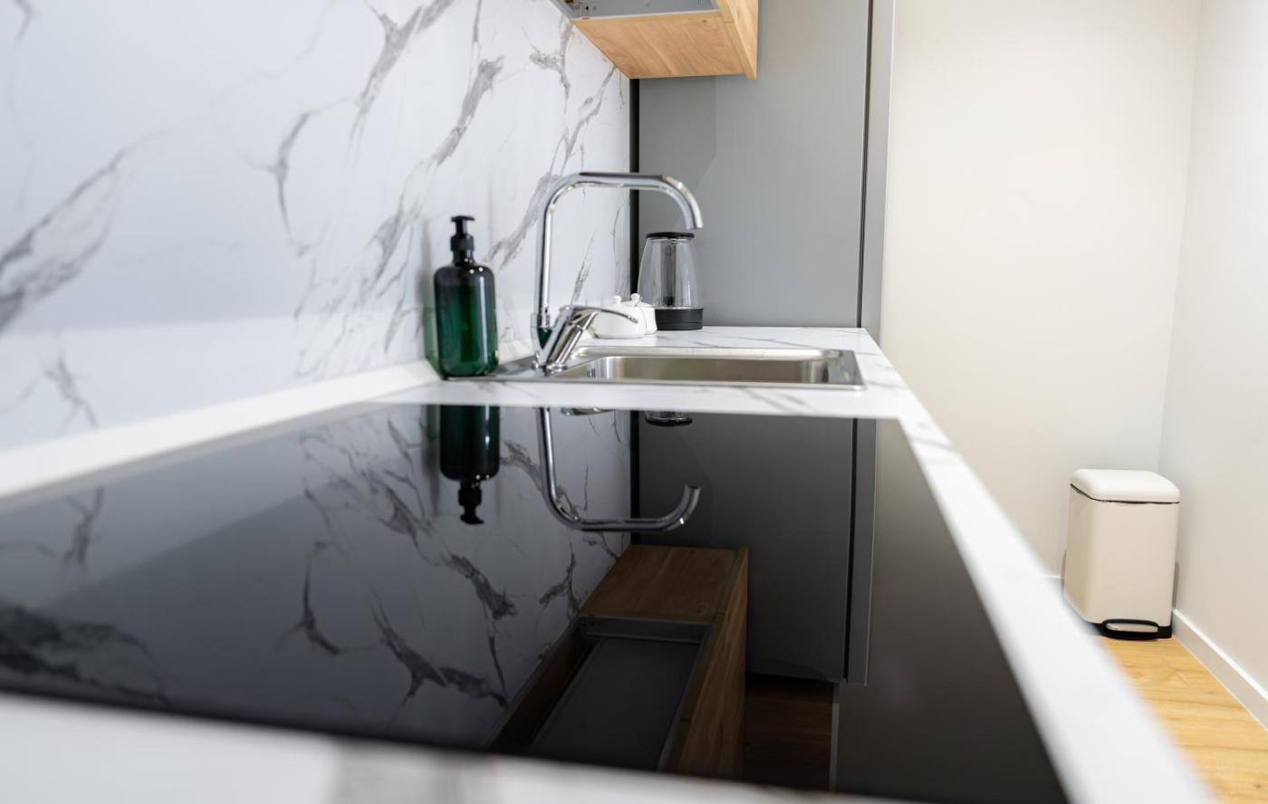One-Bedroom Apartment. This apartment includes 1 living room, 1 separate bedroom and 1 bathroom with a walk-in shower and free toiletries. In the fully equipped kitchen, guests will find a stovetop, a refrigerator, kitchenware and a toaster. The air-conditioned apartment offers a flat-screen TV with streaming services, a washing machine, soundproof walls, a tea and coffee maker as well as city views. The unit has 2 beds. ;