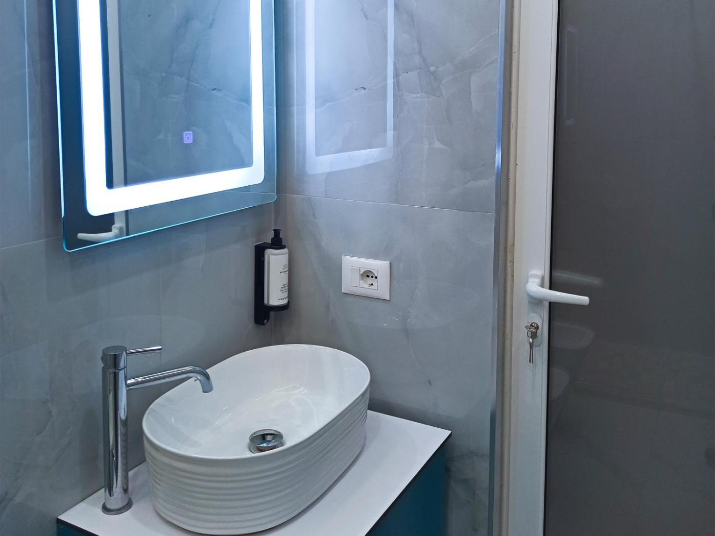 Budget Double Room. Providing free toiletries and bathrobes, this double room includes a private bathroom with a walk-in shower, a bath and a bidet. The air-conditioned double room provides a flat-screen TV with streaming services, soundproof walls, a seating area, a wardrobe as well as mountain views. The unit offers 1 bed.